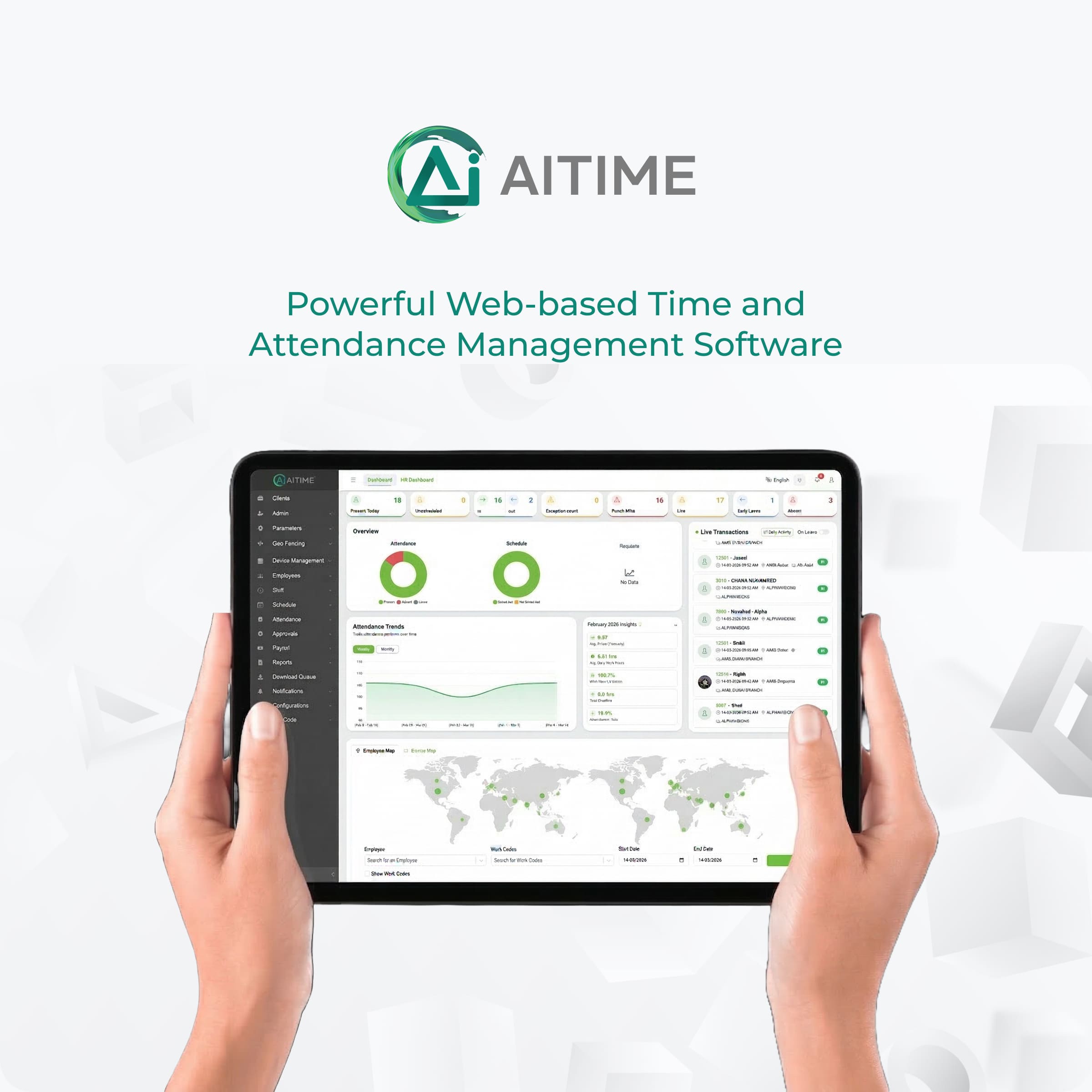 AiTime software automates employee tracking, shift management, and payroll processing. Integrate biometric devices with cloud reporting for complete workforce visibility.